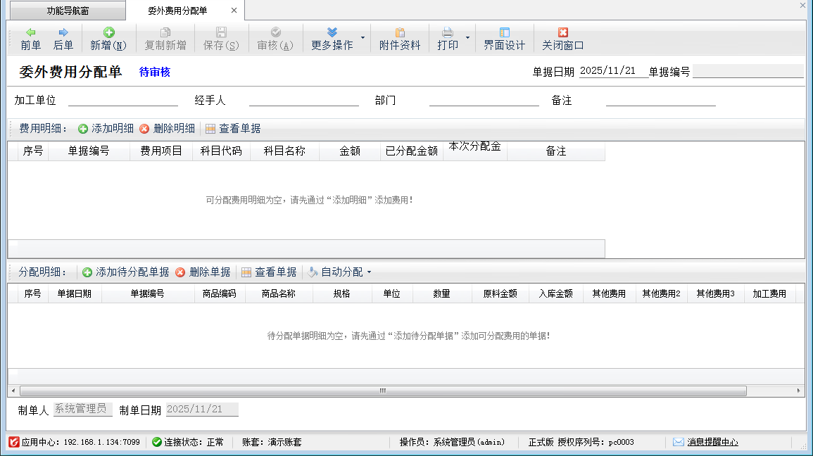 ????委外加工費用于管理委外加工過程中產(chǎn)生的各種費用,登記費用后可以將費用分?jǐn)偟郊庸ぎa(chǎn)品成本中,并自動生成應(yīng)付款,支持與加工單位進(jìn)行付款結(jié)銷(委外費用結(jié)算單)。