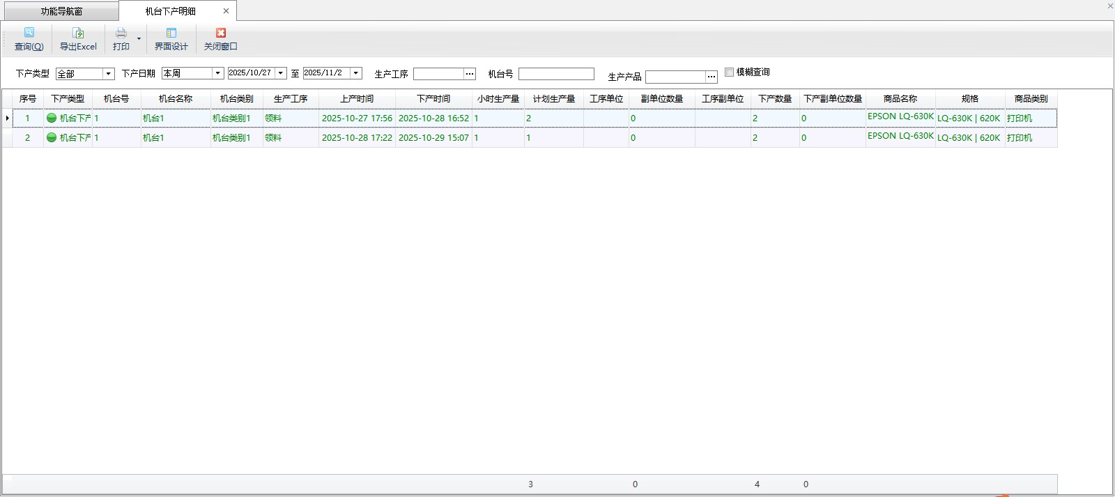 導出Excel:在工具欄點擊“導入導出”—》“導出到Excel”,可以將機臺下產明細導出為Excel文件。