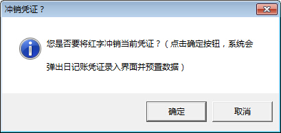 ????選擇一個憑證,然后點擊工具欄中的“更多操作”—》“紅字沖銷”按鈕,系統(tǒng)彈出提示信息,點“確定”按鈕,系統(tǒng)彈出沖銷憑證信息錄入窗口: