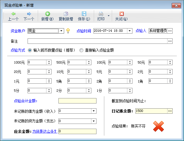 新增現(xiàn)金點驗單