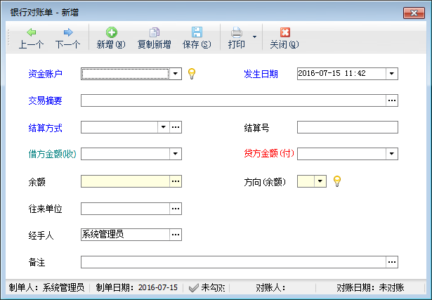 余額:當前帳戶的剩余金額。系統(tǒng)自動匯總,不允許修改。