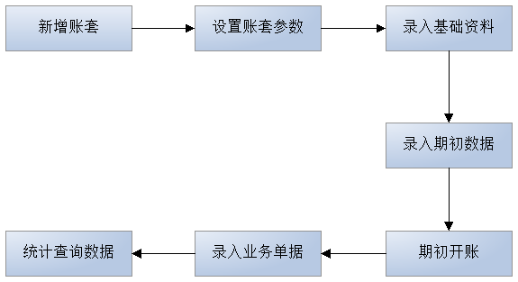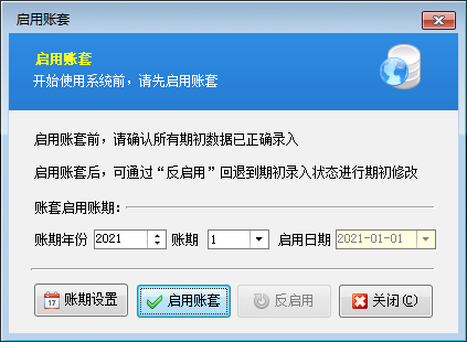 期初開賬:設定啟用軟件時間(即開賬日期);