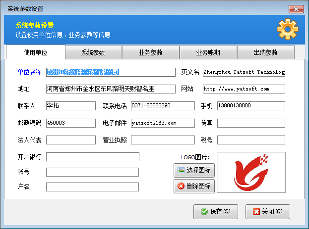 ????登錄軟件,在功能導航窗點“系統管理”—》“系統參數設置”,進行系統參數設置,主要包括使用單位信息、系統參數、業務參數以及其他參數。