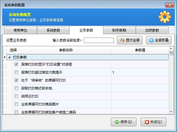 業務參數:業務參數比較多,默認的參數值為最普遍的業務控制方式,所以一般不需要修改,在詳細操作說明中我們會詳細介紹。