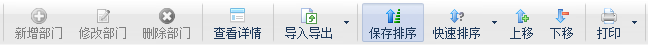 ????點“設置排序”按鈕,可以進入排序模式,軟件會顯示幾個排序按鈕,可以點“快速排序”排序按照部門名稱或編碼進行自動排序,或者手工點“上移”、“下移”按鈕設置排序。設置完成后,點“保存排序”即可保存排序設置。