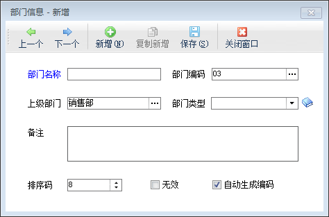 ????部門資料:部門名稱、部門編碼(可選);
