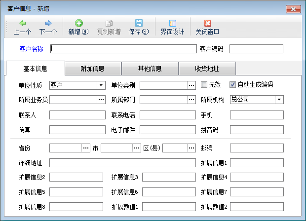 ????客戶資料中除客戶名稱外,其他數據項可按實際需要選填。
