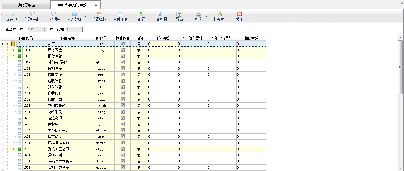期初會計科目余額