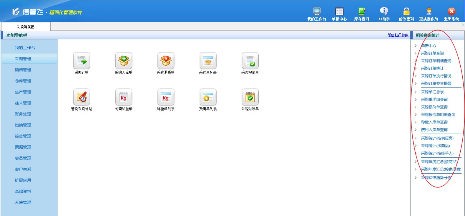 ????軟件中包括各種業務查詢和統計,在功能導航窗右側“相關查詢統計”中點擊相應的統計查詢項目,即可查詢和統計相應的數據。