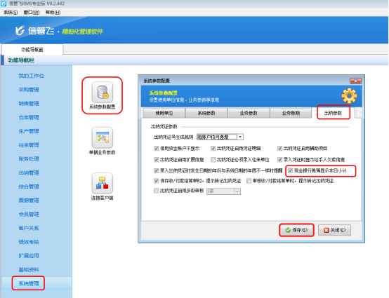信管飛RMS標準版和專業(yè)版都包括出納模塊,可以登記現金銀行日記賬憑證,都可查看現金銀行賬簿,賬簿是仿真帳頁顯示,并支持打印輸出、導出成Excel文件、可調整顯示比例。現金銀行賬簿中默認顯示本日小計,為了滿足不同客戶的需求,賬簿中是否顯示本日小計,可以在軟件中進行設置。下面我們以信管飛RMS專業(yè)版的現金賬簿為例,講一下如何使用參數“現金銀行賬簿顯示本日小計”。