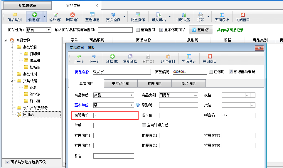信管飛RMS信管飛送貨單軟件等都支持開單前錄入好商品的預設價格,如預設采購價、預設售價等,方便開單選擇商品時自動獲取價格信息。如下圖所示,設置商品“洗發水”預設售價50元/瓶,以送貨單軟件為例示范一下如何設置新開送貨單時可自動取商品預設售價。