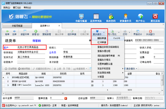 信管飛送貨單軟件是一款針對中小型企業(yè)開發(fā)的集送貨管理、應(yīng)收款管理等為一體的送貨單打印軟件。使用軟件時(shí)如果送貨單確認(rèn)開單后,發(fā)現(xiàn)客戶名稱有誤,系統(tǒng)不支持直接修改,那么該如何處理呢?
