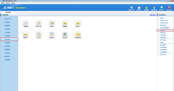 在功能導航窗點擊財務管理界面,右側(cè)相關(guān)查詢統(tǒng)計中點擊“總分類賬”,打開總分類賬界面。如下圖所示: