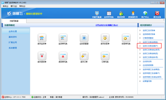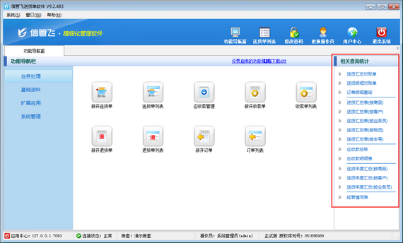 歡迎下載試用這款支持各類統(tǒng)計(jì)查詢報(bào)表的送貨單打印軟件:信管飛送貨單軟件。