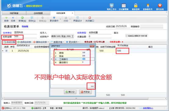 在企業(yè)的實(shí)際業(yè)務(wù)中,常常會(huì)遇到一筆應(yīng)收款需要使用多個(gè)資金賬戶(hù)進(jìn)行結(jié)算的情況。傳統(tǒng)的結(jié)算方式繁瑣且易出錯(cuò),而信管飛軟件則完美解決了這一難題。以“信管飛出納記賬軟件”為例,詳細(xì)介紹如何進(jìn)行多賬戶(hù)結(jié)算?