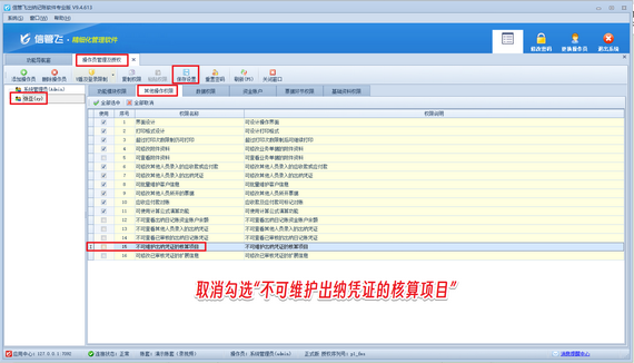 針對權限問題,解決方法簡單明了。用系統管理員賬號登錄軟件,依次點擊“系統管理”—》“操作員及授權”,進入操作員管理及授權界面,取消“不可維護出納憑證的核算項目”權限勾選并保存。